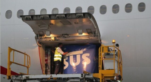 A carga chegou da Índia no final da tarde de sexta-feira ao Aeroporto Internacional de São Paulo, em Guarulhos. Depois, foi levada para o Rio de Janeiro, onde fica o laboratório Bio-Manguinhos, da Fiocruz, para passar por checagem de qualidade e segurança, além de rotulagem, com etiquetagem das caixas com informações em português.