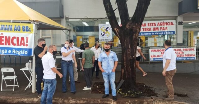O Sindicato dos Bancários de Maringá e Região realizou ato público em Paiçandu, na manhã de ontem, em frente a agência do Banco do Brasil pedindo o apoio da população e das lideranças contra o plano de reestruturação do Banco do Brasil. O município só possui esta agência do Banco do Brasil, além dos clientes gerais, tem aposentados, correntistas do funcionalismo público e produtores rurais.