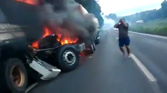 Henrique Matheus, de 23 anos, viajava atrás do caminhão do pai quando numa descida não conseguiu frear e bateu forte na traseira da carreta que ia a sua frente. O caminhão por ele dirigido pegou fogo e segundo policiais rodoviários o rapaz não conseguiu se desvencilhar do cindo de segurança. Desesperado, o pai tentou abrir a cabine em chamas, não conseguiu e atingido nas pernas pelo fogo ele viu o filho morrer carbonizado, sem poder fazer nada. A cena foi chocante segundo outros motoristas que pararam no local. O jovem morava com o pai em Santa Terezinha de Itaipu.