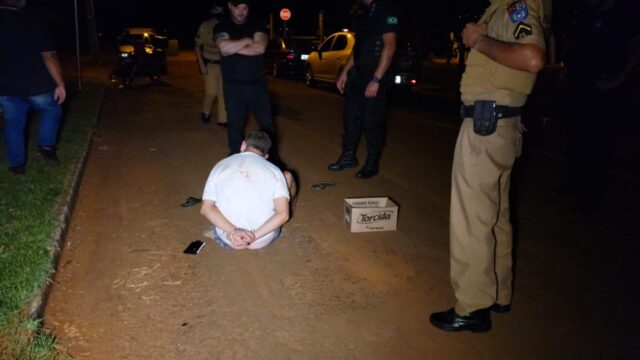 Um homem de 35 anos passou várias vezes na frente de uma lanchonete num bairro de Campo Mourão e, acelerando o seu veículo, exibia um revólver, com ameaças de atirar. Num determinado momento ele avistou uma viatura policial, se apavorou e deixou o carro morrer no meio da rua. Várias pessoas que se encontravam no local avançaram sobre o veículo, puxaram o “valentão”  pra fora e deram-lhe uma surra. Os policiais que se aproximavam, intervieram na confusão e evitaram o que poderia ter sido um linchamento. O homem foi levado com muitos hematomas para  um hospital da cidade e depois para a Delegacia de Polícia. Os agressores não foram identificados pela polícia.