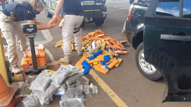 O veículo transportava 571 quilos de maconha, 11 quilos de skunk e uma pequena quantia de haxixe. A droga tinha sido colocada no bagageiro e atrás do banco traseiro no Paraguai e seria entregue em Londrina. Os suspeitos foram trazidos para a Delegacia da Polícia Federal de Maringá.