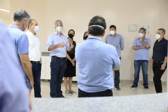 O prefeito Ulisses Maia e secretários municipais estiveram com empresários, a presidente da Organização Mundial da Família (OMF), Deise Kusztra, e o deputado federal, Ricardo Barros, em visita técnica ao Hospital da Criança de Maringá. Objetivo foi avaliar se a estrutura pode ser utilizada para o tratamento de pacientes com Covid-19. A obra está 80% pronta com 108 leitos, mas não chegaram os equipamentos para UTI, cozinha, farmácia e lavanderia. Empresários pretendem colaborar com a compra de aparelhos, todavia falta profissionais.
