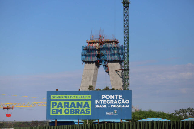 A nova Ponte da Integração que ligará o Brasil ao Paraguai ultrapassou a metade da sua execução no mês de abril, com 52% da obra concluída. Construída sobre o Rio Paraná, a ponte ligará a cidade paraguaia de Presidente Franco a Foz do Iguaçu, no Oeste paranaense. O investimento da obra, realizado por meio da Itaipu Binacional, está previsto em R$ 323 milhões, dos quais foram gastos R$ 122,5 milhões (37,92% do total).