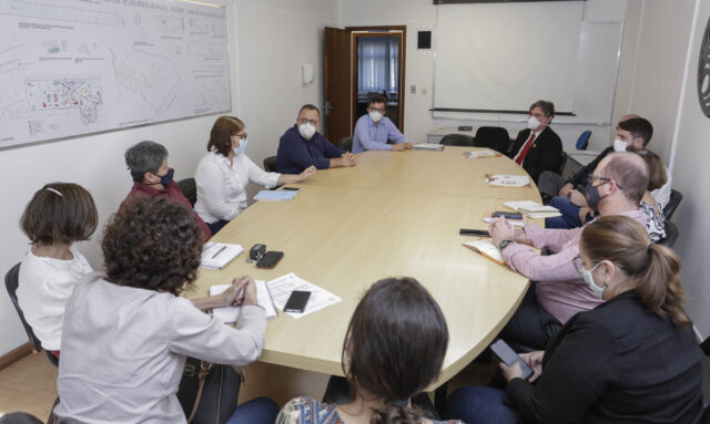 Na tarde desta quinta-feira (20) a reitoria da Universidade Estadual de Maringá (UEM), juntamente com cientistas da universidade e representantes do Hospital Universitário Regional de Maringá (HUM), reuniram-se com o Secretário de Inovação, Aceleração Econômica, Turismo e Comunicação (Siacom) de Maringá, Marcos Cordiolli.