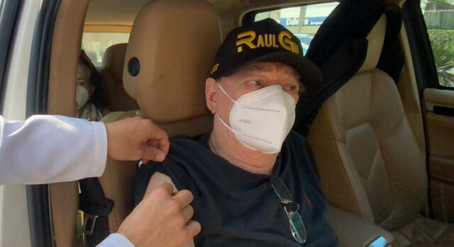 A primeira dose foi aplicada em março passado. Na ocasição, Raul Gil foi atendido em um dos postos drive-thru da cidade.