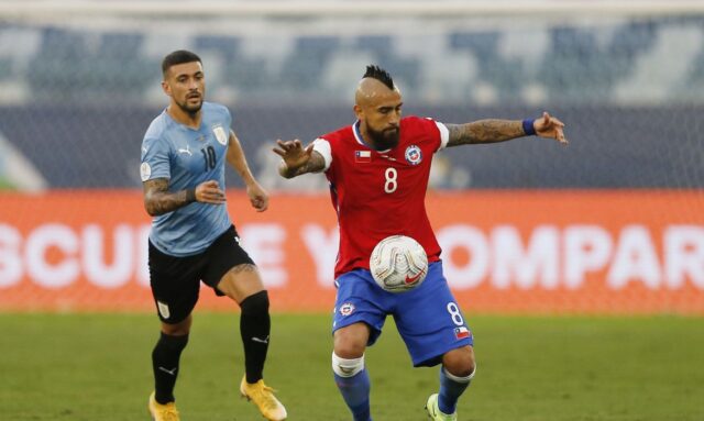 No minuto seguinte, Arrascaeta pegou uma sobra de Suárez e chutou forte de direita para mais uma defesa de Bravo. Aos 26, veio o gol da La Roja. Eduardo Vargas tabelou com Brereton e entrou livre na área pelo lado direito. O atleta do Atlético-MG chutou cruzado para superar Muslera. Esse foi o 14º gol de Vargas em edições de Copa América. Assim ele ficou a apenas três dos maiores artilheiros do torneio, o argentino Norberto Mendéz e o brasileiro Zizinho.