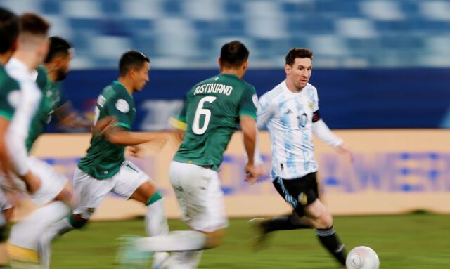 O craque argentino Lionel Messi brilhou nesta segunda-feira (28) e ajudou a Argentina a golear a Bolívia por 4 a 1, na Arena Pantanal, em Cuiabá, na noite desta segunda-feira (28), em jogo válido pela 5ª rodada do Grupo A da Copa América.