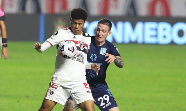 O São Paulo empatou com o Racing (São Paulo) em 1 a 1, na noite desta terça-feira (13) no estádio do Morumbi, em São Paulo, no jogo de ida das oitavas de final da Copa Libertadores.