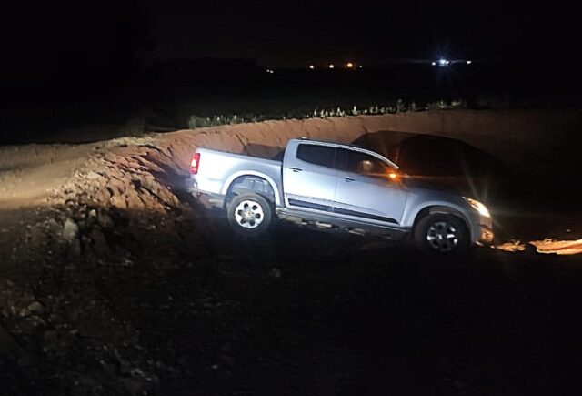 A mulher com os filhos trafegavam pelo centro de Cianorte quando foi abordada por três homens à espreita na Avenida Maranhão domingo à noite. Um dos marginais tomou o volante enquanto outros dois seguiam atrás, um de moto e outro dirigindo um carro preto. Eles pegaram o rumo de Terra Boa e ao chegar numa estrada secundária, conhecida como Cristalina, o bandido que dirigia a caminhonete perdeu o controle do volante e caiu com as rodas dianteiras em uma cisterna aberta. Após a batida, ele desceu e os três fugiram. As vítimas gritaram por socorre e um carro que ia passando as levaram até o posto da Polícia Rodoviária na saída para Maringá. Os assaltantes não foram localizados.