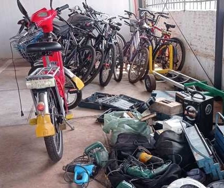 Centenas de produtos roubados e furtados em Maringá estavam armazenados em uma chácara na Vila Morangueira. O local era uma espécie de “loja do crime”, onde ladrões guardavam objetos furtados ou tomados em assalto na cidade, para dali serem repassados aos receptadores. O local foi alvo de operação da Polícia Militar ontem à tarde. A localização do esconderijo foi possível porque lá estava uma bicicleta elétrica que tinha rastreador. O suspeito de ter furtado a bicicleta encontrava-se na chácara quando os policiais chegaram. Tentou fugir mas foi alcançado e preso. Entre os objetos apreendidos no local haviam oito bicicletas, equipamentos para marcenaria e construção civil, armas, roçadeiras, aparelhos de som e perfumes.