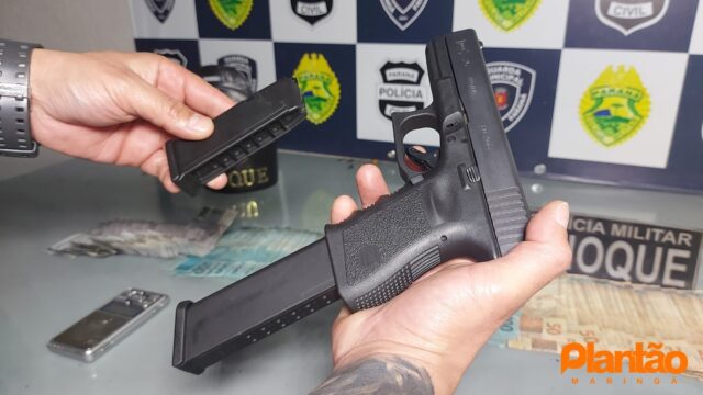 Os policiais da Choque receberam denúncia e foram até a Rua Vitor do Amaral, no Jardim Alvorada II, em Maringá. Lá detiveram um rapaz de 23 anos, que tinha contra ele um mandado de prisão em aberto. A prisão ocorreu às 22hs30 de terça-feira e em poder do suspeito foram encontradas duas pistolas, farta munição e R$ 27 mil em espécie, além de dois celulares, balança de precisão e carregadores. O jovem foi identificado como Wesley Múcio Gimenes, levado para a 9ª. Subdivisão Policial e autuado em flagrante.