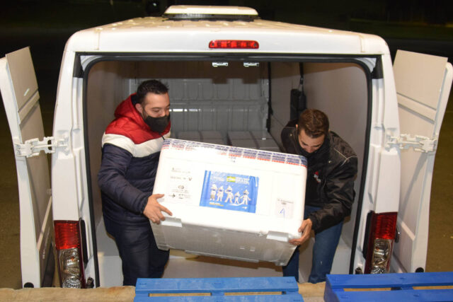 As doses de AstraZeneca/Fiocruz desembarcaram no Aeroporto Internacional Afonso Pena, em São José dos Pinhais, às 20h05, no voo AD 4078 e foram enviadas para o Centro de Medicamentos do Paraná (Cemepar) para conferência e armazenamento, até que sejam repassadas aos municípos.