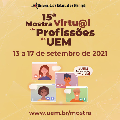 A Universidade Estadual de Maringá vai promover de 13 a 17 de setembro a 15ª Mostra de Profissões da UEM, que será desenvolvida no formato remoto, gratuita, contemplando vários câmpus regionais da instituição, tendo como público alvo estudantes do ensino médio.