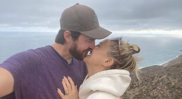 Ela postou uma foto sorridente ao lado do músico, em que é possível ver o anel, e escreveu: “Vamos lá”.