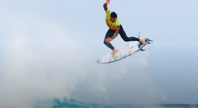 Nas duas baterias, o tricampeão se impôs logo no início, abrindo vantagem confortável na somatória de notas e colocando a pressão em Filipinho. Na primeira, Medina venceu com somatória de 16.30, contra 15.33 do adversário.