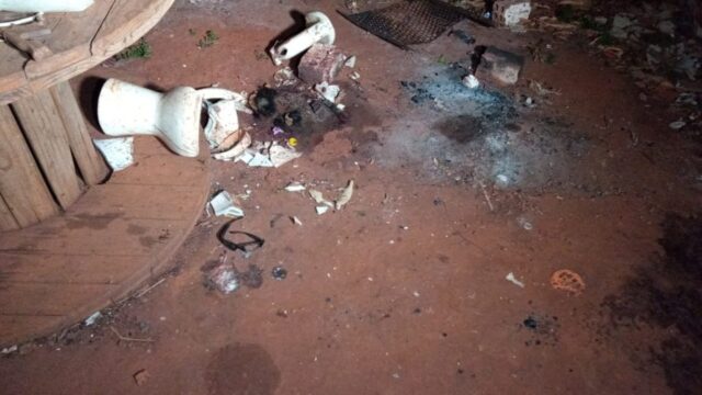 O criminoso usou lajotas e até um vaso sanitário para matar o jovem Anderson da Silva Pereira, de 25 anos.  O corpo foi encontrado por vizinhos já em estado de decomposição nos fundos da casa da vítima no Jardim Lar Paraná. Policiais civis encontraram ao lado do corpo pedaços de tijolos e um vaso sanitário, provavelmente quebrado na cabeça de Anderson que estava com o rosto desfigurado. O assassinato, cometido com requintes de crueldade, teria ocorrido no final de semana e o corpo só foi localizado segunda-feira à tarde, devido ao mau cheiro que exalava.