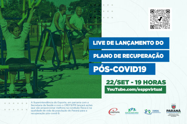 O Governo do Estado, por meio da Superintendência Geral do Esporte e da Secretaria estadual da Saúde, em parceria com o Conselho Regional de Educação Física – 9ª Regional, lançará nesta quarta-feira (22) ações para proporcionar melhora na condição física e na qualidade de vida dos paranaenses no pós-Covid-19. O lançamento ocorre em uma live noYouTube oficial da Escola de Saúde Pública do Paraná, às 19h.