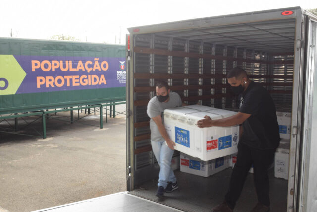 As doses serão encaminhadas para o Centro de Medicamentos do Paraná (Cemepar) para conferência e armazenamento até que sejam distribuídas para as Regionais de Saúde.
