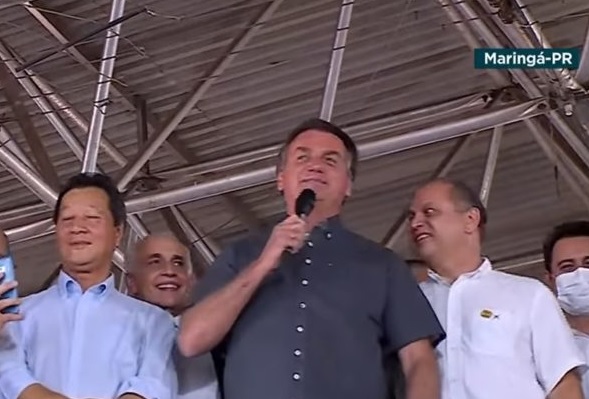 Com um pouco de atraso, Bolsonaro desembarcou da aeronave da FAB e a comitiva seguiu para o Parque de Exposições de Maringá, onde o governador do Paraná, Ratinho Júnior, já se fazia presente.