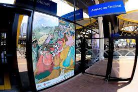 A Prefeitura de Maringá instalou no Terminal Urbano, em pontos de ônibus e nos vidros traseiros dos ônibus (busdoor) do transporte coletivo os painéis de dez artistas maringaenses contemplados no edital “Arte Ponto a Ponto”, da Lei Aldir Blanc.