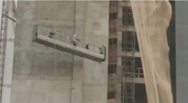 Imagem mostra o desespero de trabalhadores que foram surpreendidos pela tempestade de sexta-feira quando desciam do prédio em construção pelo elevador de serviço, em Maringá.
