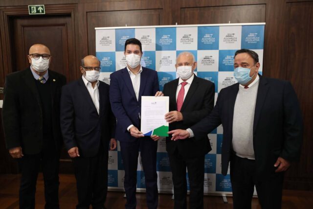 PRESENÇAS – O primeiro-secretário da Assembleia, Luiz Claudio Romanelli, e o líder do Governo, Hussein Bakri, também acompanharam a entrega.