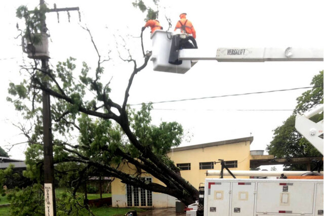 Para a Copel, o temporal deste fim de semana foi 20% maior do que a tempestade registrada anteriormente, também considerada grave. No pior momento do temporal, 552 mil unidades consumidoras chegaram a ter o fornecimento de energia interrompido pela ocorrência de raios, queda de árvores, e rajadas de vento que variaram entre 80 e 90 km/h em diversas localidades. A falta de luz pode ser comunicada pelos telefones 0800 5100116 e whatsapp 41 3013-8973; pelo site, aplicativo ou por mensagem de texto (SMS) para o número 28593, com as letras “SL” e o número da unidade consumidora.