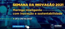 Até sexta-feira, 29, acontece em Maringá a Semana da Inovação 2021 com uma programação diversa contendo palestra, mesa-redonda, workshop, visita guiada a empresas, entre outras ações. O evento é da Secretaria de Inovação, Aceleração Econômica, Turismo e Comunicação e traz o tema “Maringá, Inovação, Transparência e Qualidade de Vida”. A Semana da Inovação atende a Lei n. 10.987/2019.