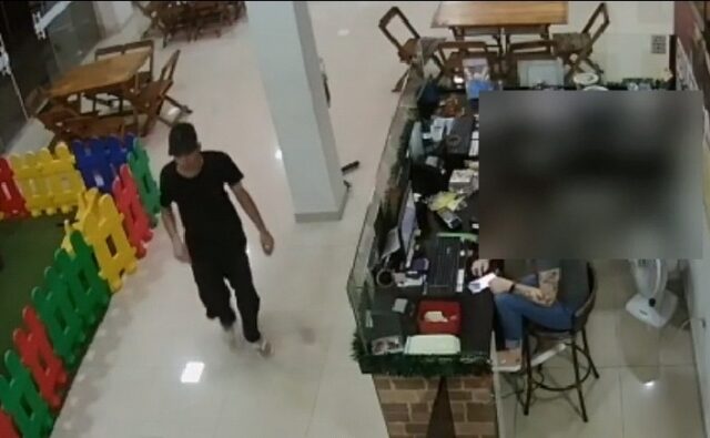 Quase que simultaneamente câmera de segurança registrou assalto a mão armada em uma casa de lanche no Jardim São José, também em Sarandi. Na imagem o homem aparece com uma faca rendendo o caixa. Ele pegou o dinheiro e em seguida fugiu de bicicleta. Não havia sido identificado até ontem à tarde.
