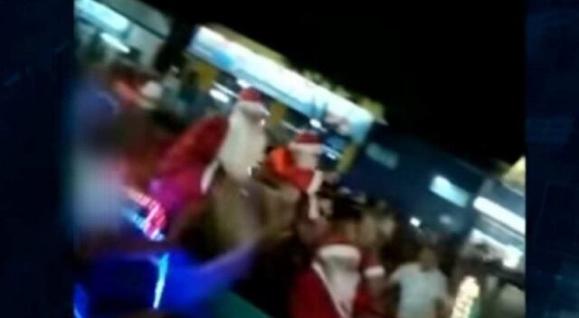 Papai Noel desfilava em carro aberto e distribuía balas para as crianças quando foi atacado por um grupo de pessoas, que o apedrejou e ainda lhe roubou o saco de guloseimas.