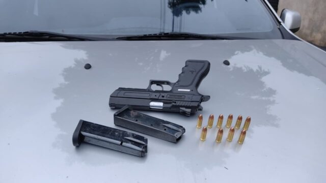 Um rapaz de 26 anos foi preso em flagrante enquanto comercializava drogas no Jardim Esplanada em Sarandi na manhã de ontem . Investigadores da Polícia Civil receberam informações de um denunciante anônimo e chegou ao local a tempo de prender o suspeito em flagrante na Rua Ponta Porã. Ao dar voz de prisão e algemar Alex da Silva Bernardo os agentes apreenderam quantidades de maconha, cocaína e uma pistola 9mm com dois carregadores e munições. O delegado Adriano Garcia informou que a arma deverá passar por perícia mas a suspeita é de que a mesma pistola teria sido usada em vários homicídios e tentativas ocorrido nos últimos meses na cidade.