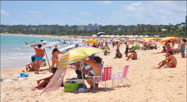 Coisa bonita é o povo curtindo férias na praia. É um lugar superdemocrático, aberto a todos os padrões. Um homem de calção e sem camisa, uma mulher de maiô ou de biquíni, você não sabe se é alguém que tem mais ou menos dinheiro, ou se tem mais ou menos cultura, ou se é mais ou menos importante lá no onde mora. E mais: a maioria nem tá aí para esses grilos de elegância e estética. Todo mundo igual. Todo mundo gente. Gente feliz, que trabalha o ano inteiro e agora está ali celebrando a vida.