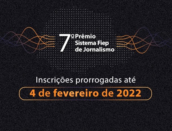 O 7° Prêmio Sistema Fiep de Jornalismo está com as inscrições prorrogadas até 4 de fevereiro de 2022. O prêmio é uma iniciativa do Sistema Fiep para valorizar o trabalho da imprensa e seu papel no desenvolvimento do setor. Podem concorrer ao prêmio materiais jornalísticos relacionados à indústria paranaense. A inscrição, o regulamento e os temas centrais para concorrer ao prêmio estão disponíveis no site da Fiep.