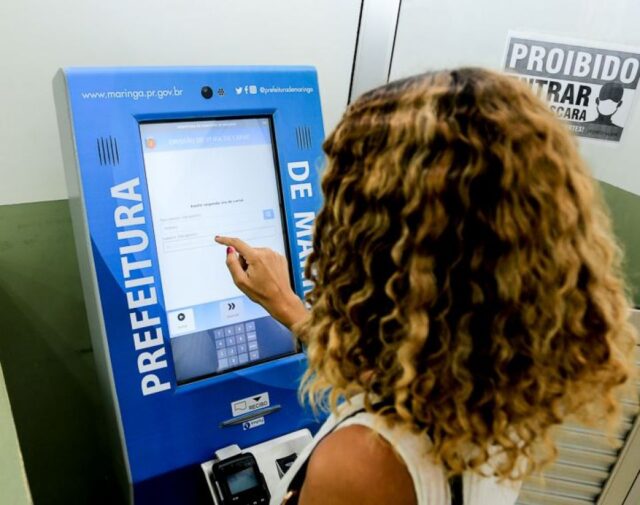 Para pagamento do IPTU e outros serviços, a Prefeitura de Maringá disponibiliza totens de autoatendimento em vários pontos da cidade. No caso do IPTU, é possível imprimir a guia e pagar com 7% de desconto até 10 de fevereiro. Com essa ferramenta, a população pode ter mais facilidade em acessar, imprimir e também fazer o pagamento do IPTU em diferentes horários.