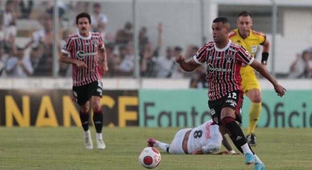 Aos 23 minutos, Kevin cobrou lateral rápido e bagunçou a zaga do São Paulo, que não estava esperando. Livre, Pedro Júnior invadiu a área e foi derrubado por Jandrei. O árbitro assinalou pênalti. Na cobrança, Lucca bateu forte, sem chances para o camisa 93. Foi o quinto gol do atacante pontepretano na competição.