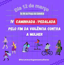 O Fórum Maringaense de Mulheres, em parceira com a  Secretaria de Políticas Públicas para  Mulheres, Conselho Municipal da Mulher de Maringá e a Procuradoria da Mulher da Câmara Municipal de Maringá, realiza a IV Caminhada/Pedalada pelo fim da violência contra a mulher. O objetivo é chamar a atenção da sociedade e do poder público sobre a necessidade de estabelecer políticas públicas para o combate à violência que vítima mulheres e meninas.