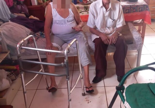 Um casal de idosos teve a casa invadida na noite de anteontem por dois homens, que diziam que estavam ali para levar objetos de valor. Manoel Pereira, de 77 anos, que tem problemas de saúde, tentou reagir com uma faca mas foi dominado pelos dois bandidos, que o prenderam no quarto. A mulher dele, que usa andador, também foi agredida. Mas o marido conseguiu pular a janela e foi pedir socorro na vizinha.