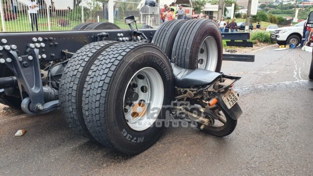 A forma como a moto foi parar no meio do rodado traseiro de um caminhão intrigou as autoridades de trânsito ao atender mais um acidente fatal envolvendo motociclista ontem no início da tarde no Contorno Sul de Maringá. Foi numa reta entre os conjuntos Borba Gato e Itaipu. Um homem que trabalhava no telhado de um prédio comercial diz ter visto tudo do alto e informou que o caminhão fazia uma ultrapassagem em local de faixa contínua. O motociclista seguia no sentido PR-317 (rodovia que liga Maringá a Campo Mourão) quando em alta velocidade o motociclista não conseguiu frear e bateu no vão dos dois eixos-traseiros do caminhão. Familiares da vítima disseram que ela estava indo buscar sua carteira em casa para almoçar com amigos.