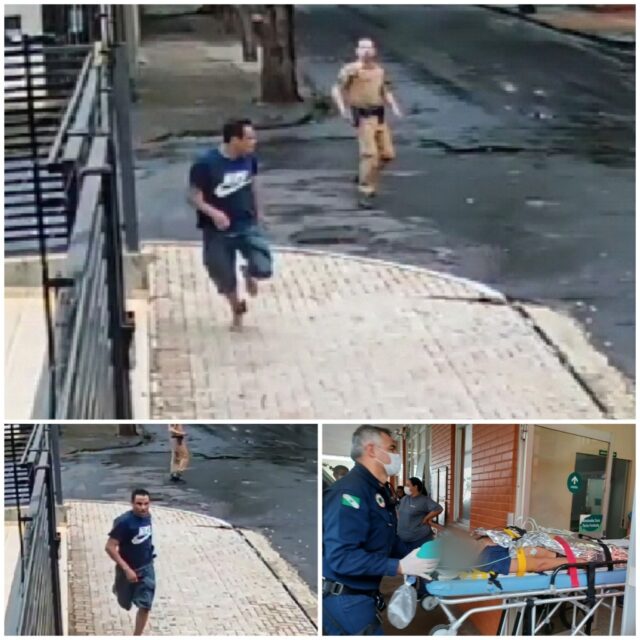 O homem identificado como Lucas Pereira foi surpreendido pela Polícia Militar quando tentava assaltar uma residência em Santa Fé . Ele não obedeceu a voz de prisão dada por um policial e ao sair correndo levou um tiro nas nádegas. Uma câmera de segurança registrou a cena do suspeito tentando fugir e sendo atingido pelo policial. O homem perdeu muito sangue, teve que ser socorrido pelo Samu e trazido de helicóptero para o Hospital Universitário de Maringá, com risco de morte.