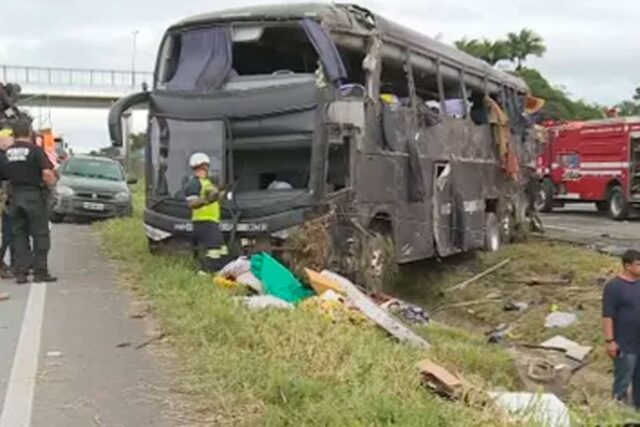 O ônibus, que tombou no canteiro central da rodovia, levava 19 pessoas. Fora as seis que morreram no local, duas não sofreram lesões e 11 foram levadas ao pronto-socorro de Registro (SP).