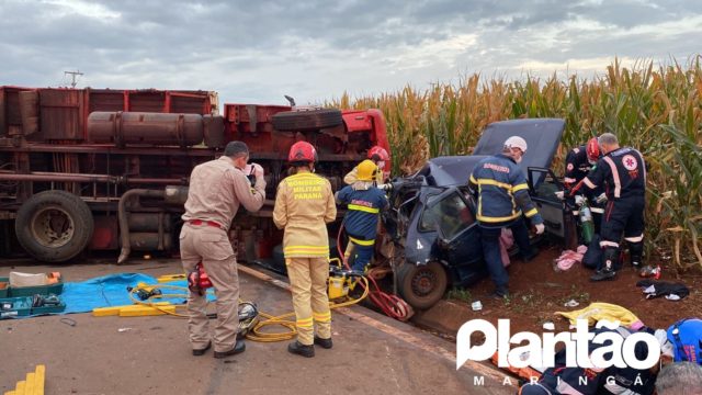 O grave acidente ocorreu na manhã dessa segunda-feira próximo ao distrito de Ivailândia. Entre os cinco ocupantes de um automóvel que foi atingido por uma carreta estavam três crianças. O acidente mobilizou o helicóptero do aeromédico e vários socorristas de ambulância do Samu e Siate . De acordo com o médico Maurício Lemos, três crianças de 4, 6 e 9 anos viajavam no banco traseiro do automóvel sem o cinto de segurança e sem cadeirinhas. O caso mais grave é do menino de 4 anos que sofreu múltiplas fraturas e traumatismo craniano. A criança foi encaminhada para o Hospital Universitário de Maringá As outras vítimas foram levadas para hospitais de Campo Mourão.