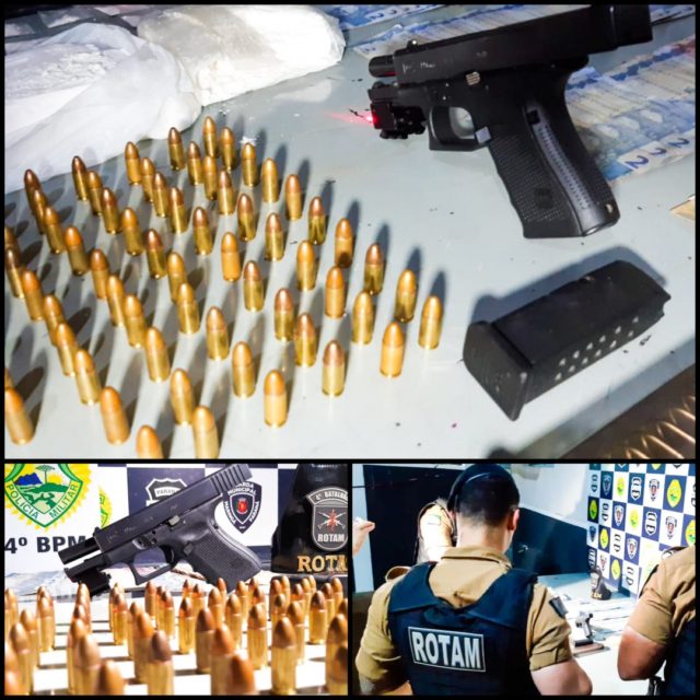 O arsenal composto por pistola 9mm , farta quantidade de balas e um pacote dom 1,5 quilos de cocaína pura foi apreendido na residência do suspeito. A polícia acredita que a tabacaria foi aberta apenas para servir de fachada e de “lavanderia” para dinheiro ilícito. Com o proprietário foram apreendidos R$ 1.700,00 em notas miúdas, até de R$ 2,00.