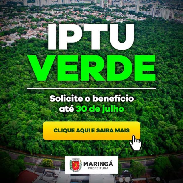 O Imposto Predial Territorial Urbano (IPTU) Verde é um programa que concede descontos para o proprietário que adota práticas sustentáveis como instalação para captar água da chuva, plantio de árvores, construção com materiais sustentáveis, cobertura vegetal, áreas permeáveis abundantes, utilização de energia eólica, entre outras ações. O prazo para inscrição termina neste sábado, 30. De acordo com a Prefeitura de Maringá, a redução tributária varia entre 3% e 20%.
