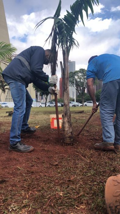 A Prefeitura de Maringá segue com ações constantes de proteção das áreas verdes da cidade. Nesta sexta-feira, 29, equipes da Secretaria de Limpeza Urbana (Selurb) realizaram o plantio de 15 mudas de palmeiras na Praça da Catedral. As mudas foram plantadas em reposição de outras que foram removidas por estarem secas e em mau estado de saúde.