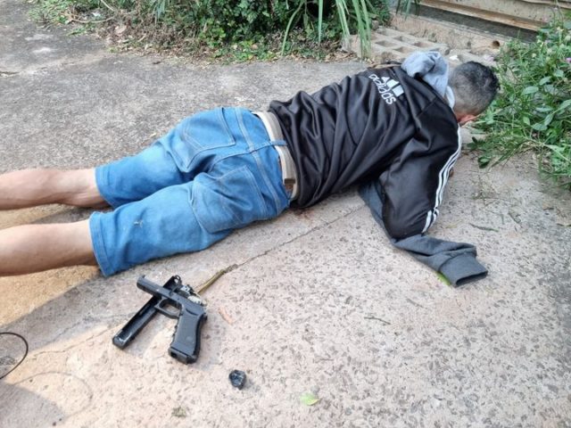 Um suspeito, de 46 anos, com extensa ficha policial, tentou assaltar uma adolescente anteontem à tarde em Maringá e se deu muito mal. Ele parou a moto na frente de uma garota de 16 anos, apontou a arma e anunciou o assalto. Outro adolescente que estava próximo à vítima, derrubou o suspeito com moto e tudo e partiu pra cima dele. Outras pessoas que passavam pelo local também participaram da agressão. Depois imobilizaram o suspeito e chamaram a Polícia Militar. Antes de ser levado para a 9ª. Subdivisão Policial o ladrão teve que passar por um hospital para receber atendimento médico.