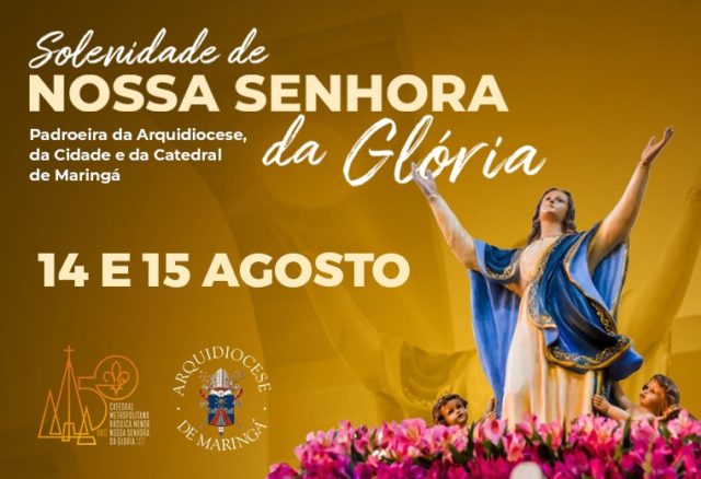 A Arquidiocese de Maringá divulgou a programação de atividades para a comemoração do dia de Nossa Senhora da Glória, padroeira da Cidade e da Arquidiocese. As ações começam no dia 14, quando também inicia a Semana Nacional da Família com o tema “Amor familiar, vocação e caminho de santidade!”. Na abertura, domingo, às 19h30, será celebrada a Missa da Vigília. Já na segunda-feira, 15, às sete horas será rezado o Solene Ofício de Nossa Senhora.