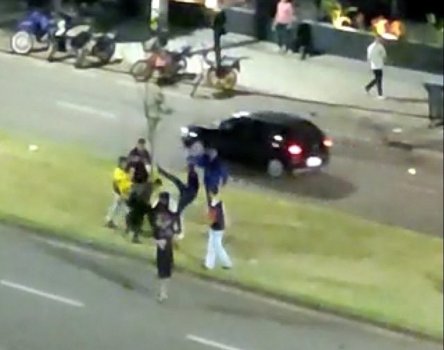 A confusão, ocorrida na madrugada de sábado para domingo em frente a uma casa noturna da Avenida Pedro Taques, no Jardim Sumaré, foi registrada por câmera externa de segurança. Moradores das proximidades disseram à Polícia que brigas naquele local são comuns nos finais de semana. Na confusão de sábado vários tiros foram disparados, mas a polícia não registrou nenhum caso de pessoas atingidas pelos disparos. Nas imagens divulgadas nas redes sociais, e que já estão em poder da Polícia, aparecem homens trocando socos e pontapés. Uma pessoa é brutalmente agredida e fica desmaiada, até a chegada da polícia. Os moradores do Jardim Sumaré estão assustados.