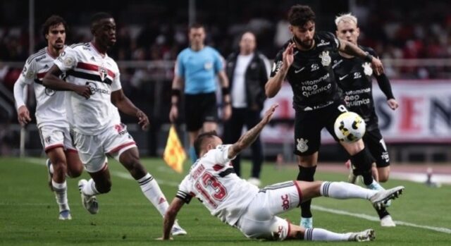 São Paulo e Corinthians fizeram neste domingo (11), no Morumbi, o clássico da 26ª rodada do Campeonato Brasileiro. As equipes bem que mostraram disposição digna de um grande confronto, mas ficaram no empate por 1 a 1. Yuri Alberto fez para o Timão, mas Eder marcou de pênalti para os donos da casa.