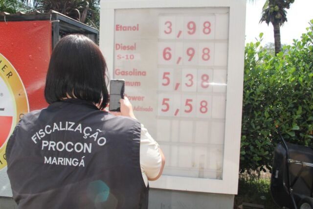 O Procon de Maringá vistoriou os postos de combustíveis da cidade nesta segunda-feira, 17, sob suspeita de aumento nos preços sem que haja reajuste anunciado oficialmente pelo Governo Federal. Os agentes do órgão de defesa do consumidor fotografaram as placas com os preços dos combustíveis e verificaram as notas fiscais de compra dos produtos. Além disso, vão notificar as distribuidoras para saberem os valores das vendas recentes e cruzarem com os preços coletados nas bombas dos postos maringaenses.