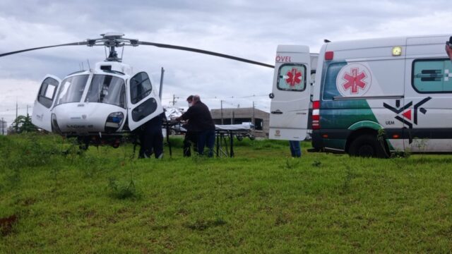 Início Maringá Samu faz primeira transfusão de sangue dentro de helicóptero